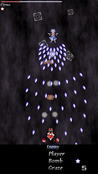 我们能使用的角色是红白灵梦,黑白魔理沙以及绿白早苗,都是在东方里非常有名的自机,甚至在很多动漫作品中都有出现过她们的身影。在自机选择画面每个自机有两种弹幕轨迹可以选择,让我们能体验更加刺激的弹幕对战。