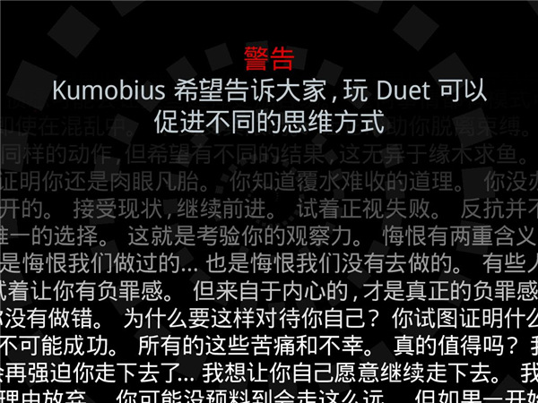 在 Duet 的“尾声”章节中,浏览全新的对白,体验新设计的游戏机制。包括超过40个新关卡、新对白和新混音的游戏音乐。 你需要一种新的精神状态才能收获这种体验。