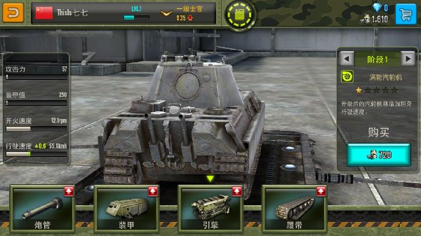 3.新增“熟练度系统”,指定坦克升满熟练度后可解锁相应技能配件,并装备到其他坦克上使用。