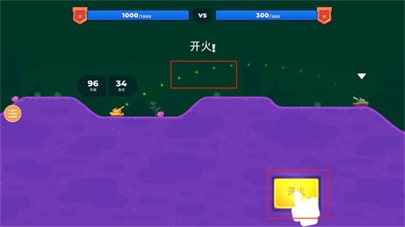 5、确定弹药发射轨迹时,玩家就可以点击开火来进行攻击。