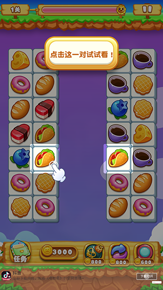 4、点击将两个相同的方块连在一起即可消除,注意不能拐大弯。