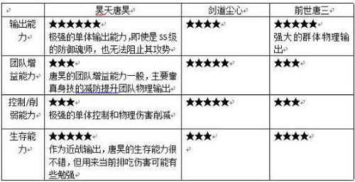昊天唐昊的单体输出能力极强,但对团队增益有限,建议围绕昊天唐昊,以快速突破对方防御魂师为核心战术,搭配阵容。
