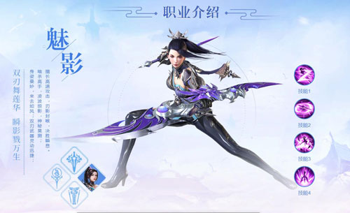 魅影身姿曼妙,来去如风;双刃武器灵动迅捷;暗杀高手,凌波掠影,神秘莫测;擅长高速攻击,刃影封喉,决胜瞬息