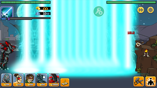 这是一款战争策略游戏,游戏中升级科技从石器时代到青铜文明再到火器时代,现代文明最终升级为外星科技。目的只有一个摧毁对方的堡垒。|