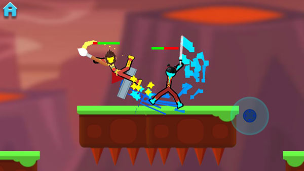 2、游戏中操控一个火柴人,利用简单的横版摇杆操作操控火柴人进行热血格斗。