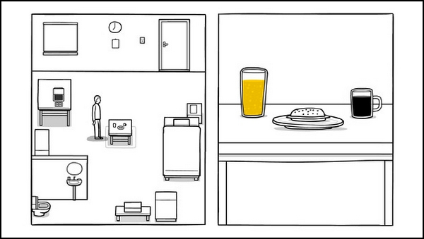 时间来到1972年8月14日,Bob在一间白色房间醒来,通过日程表可以看到Bob在这里每天过着非常规律的生活,每天要接受查房和记忆训练。在抽屉里有Bob的职工卡,可以看到Bob工作的地方就是之前【paradox】里出现的鸟食公司Johnsson。上面写着Bob的生日是1931年7月6日。桌上放着咖啡店Owl Nest的单据 (从后面的剧情可以得知,白门里的护士可以通过患者之前的物品连接对应的记忆进行提取。)。查房的护士Sarah说Bob遭遇了事故并且提了一些问题。