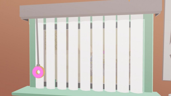 2、在图中将窗帘左侧的甜甜圈,拉到最右面,就会看到一扇窗户。