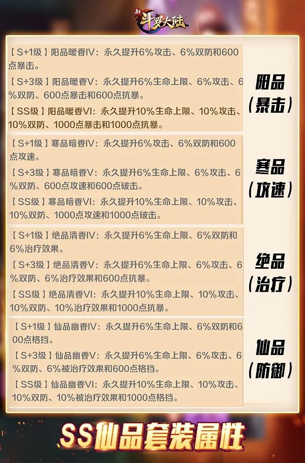 SS仙品的强大之处不仅仅体现于单个属性,它的套装效果也是不容忽视的。
