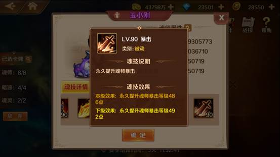 然后向大家安利一个A+魂师,那就是唐三的恩师——大师玉小刚。大家也许会好奇为什么会推荐这个魂师,这里需要大家看一下玉小刚的技能。玉小刚有三个技能都是都是提升暴击等级的(头发少加暴击?),只需要选一个大师放在助战,就能够给每名主力魂师提供486*3*0.25=364.5点暴击,收益还是比较可观的。当没什么A+好拿,你的队伍又能从暴击属性受益时,选个大师丢援助位会是个不错的选择。