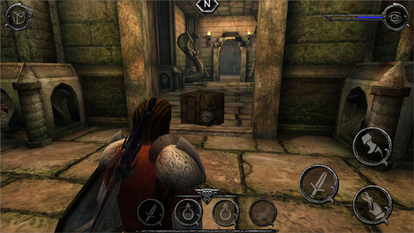 5、通过这个毒液池,往上走,第一个门口有个机关,踩踏上去,前方的门就会开启,走开它就关门。此时,只能继续用风之符石,将地步的箱子给挪上来一个放在机关这里,让门保持开启。