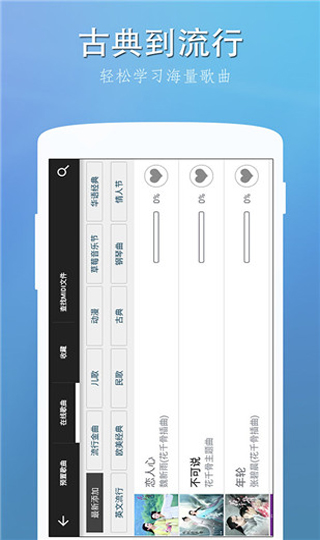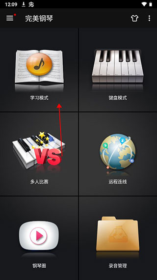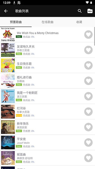 2、来到学习模式界面后,可查看软件预置的歌曲,如果此时处于联网状态还可查看演奏在线歌曲