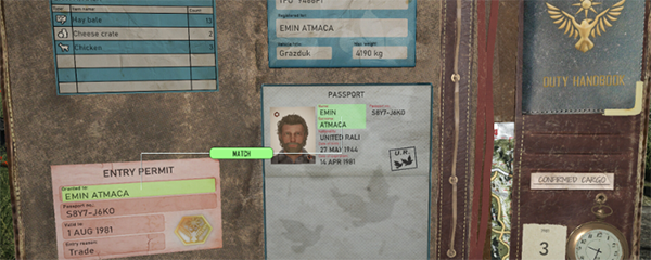 3、你可以在游戏中查看驾照和文件。玩家可以允许或拒绝通过边界。