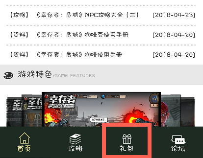 第二种:点击菜单:“幸存联盟>游戏官网”,进入官网后点击“游戏礼包”获取兑换码