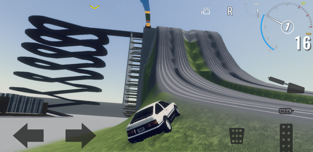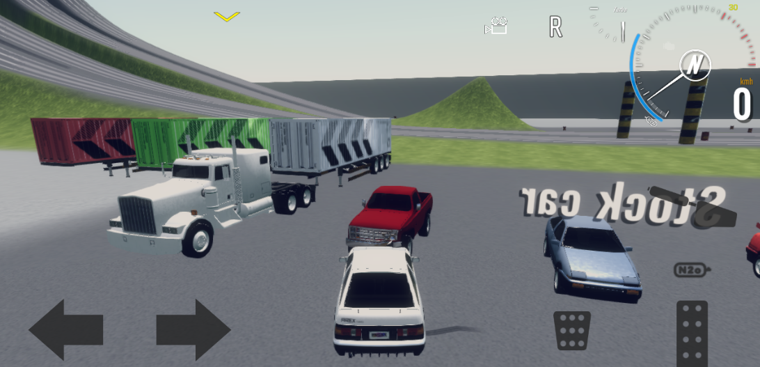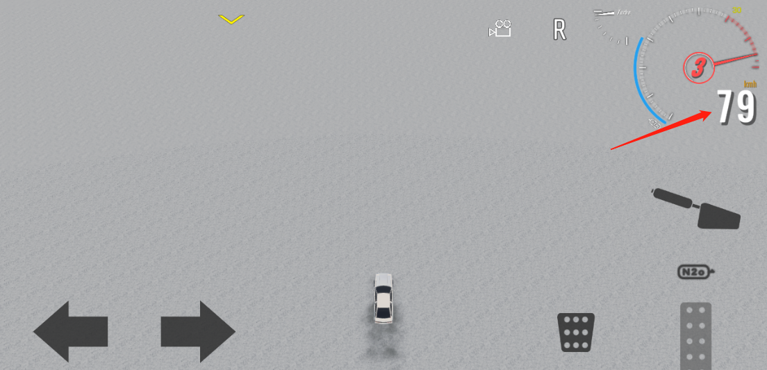 3、进入游戏后,左边的按钮控制车辆的左右移动,而右边的控键则是刹车和油门;
