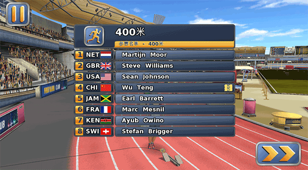 3、进场后开始出现了每个参赛的国家,玩家将扮演当前国家的运动员开始比赛。