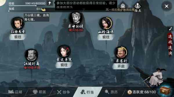 再把也是19级开启的华山论剑也打个10把,顺便熟系一下职业技能 。无论胜负,10把之后32级;30级后开启行当玩法,记得选择一个适合的行当身份。
