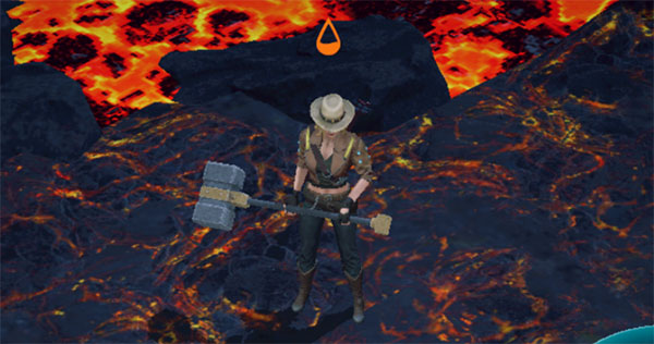 远处的天空都被映照成了暗红色,那是一座巨大的活火山。赤红色的岩浆不停地喷涌而出,所经的一切都会被点燃、融化,归于灰烬,彰显着原始而蛮荒的巨大力量。每一次呼吸,你都会感觉自己的内脏已经被灼伤。炽热的空气将周围的一切图像都扭曲了。枯萎焦黑的树木像一只只垂死呼救的干瘪人手,抓向天空。就连坚固的岩石也被炙烤得裂开了一条条缝隙,只要一碰,就会变得粉碎。那些干枯的河床中,流淌的只有硫磺和火焰。但求生的强烈欲望告诉你不能后退,想要逃离这座地狱一样的荒岛就只有两个选择,死或是继续前进。