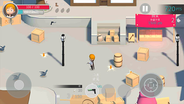 4、精致卡通的场景以及超清的画质,在不断地战斗中获得金币和资源道具,不断拾取提升你的攻击力轻松消灭鸽子哦。