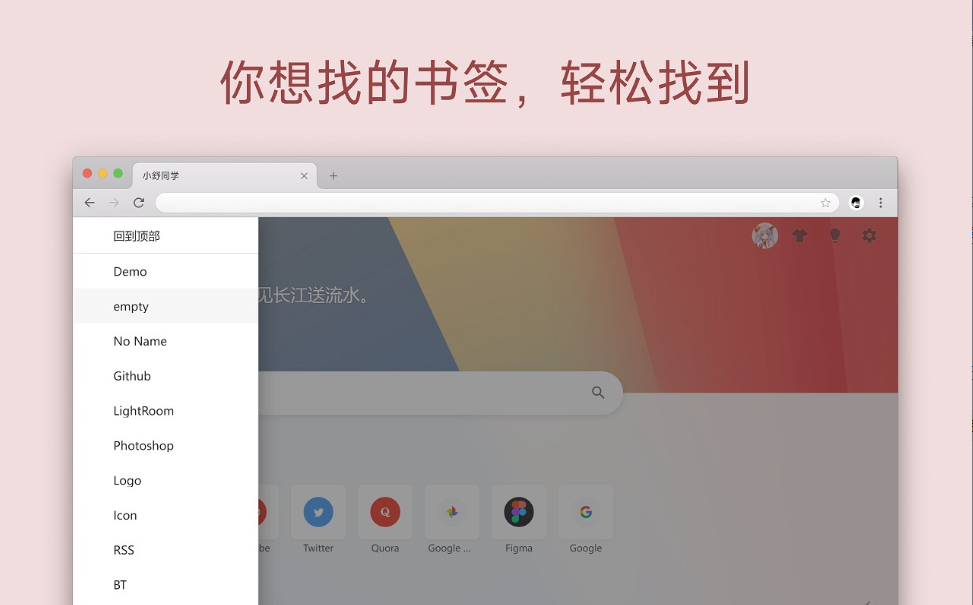 4、小舒(书)同学是基于收藏夹的新标签页,更好的展示你的收藏夹内容,提供筛选、排序、布局调整等常规功能。