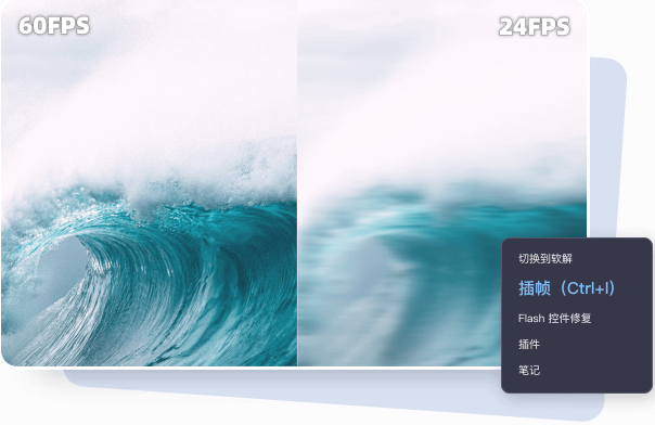“傻瓜”式操作,一键把24帧/30帧的视频通过算法补偿到60帧的帧数,让视频观看时更清晰流畅