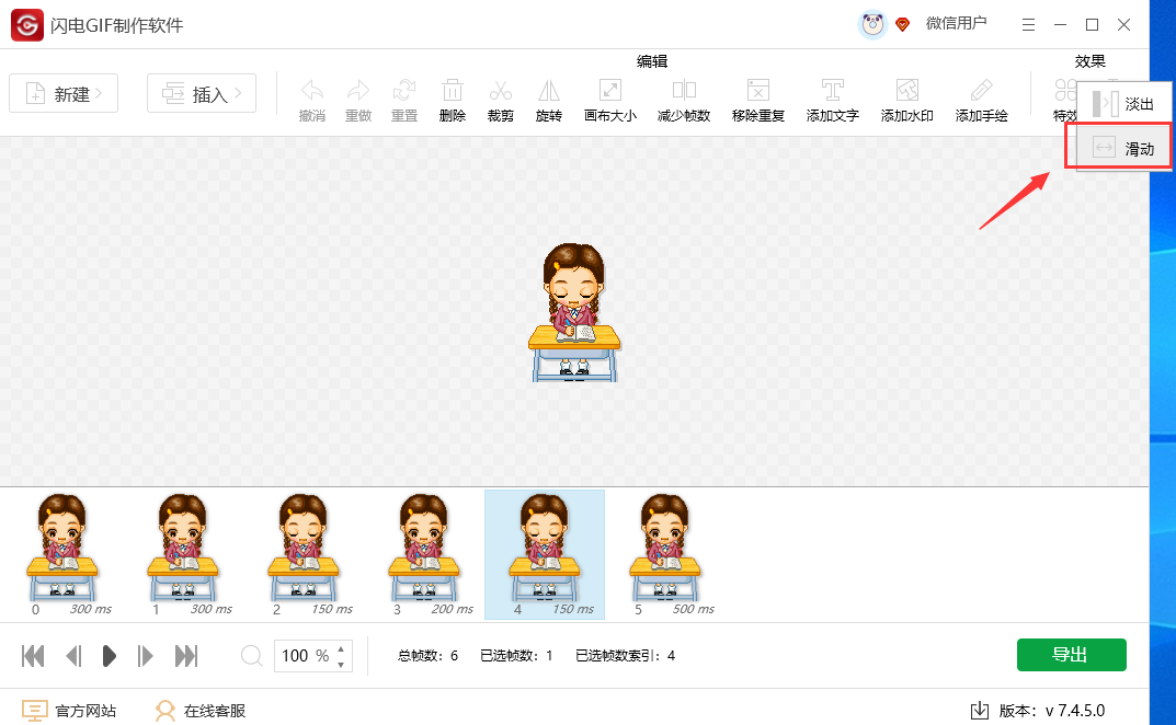 闪电GIF制作软件给gif动图添加滑动效果的方法