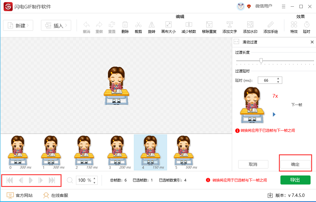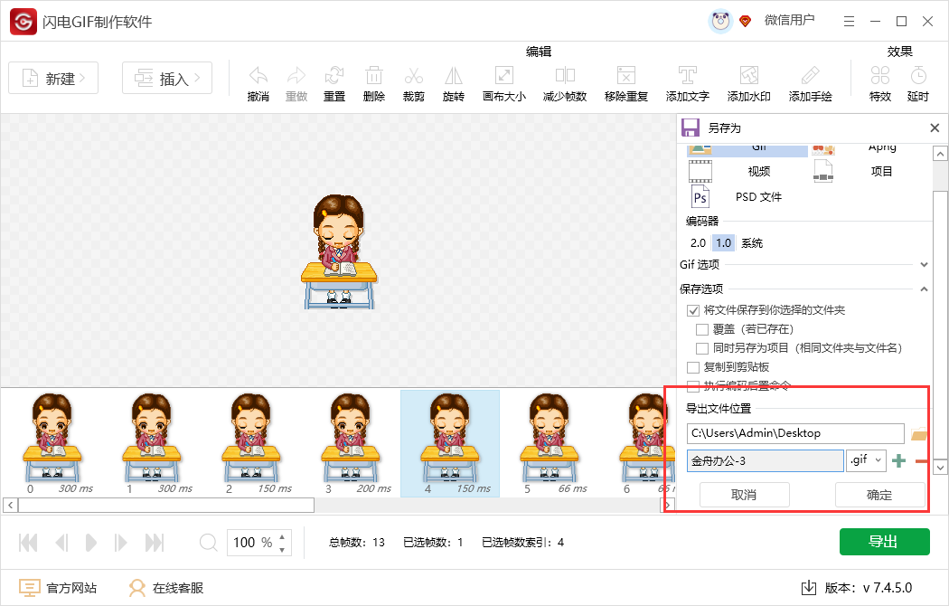 8、全部设置完成后,点击【导出】,选择为GIF类型;