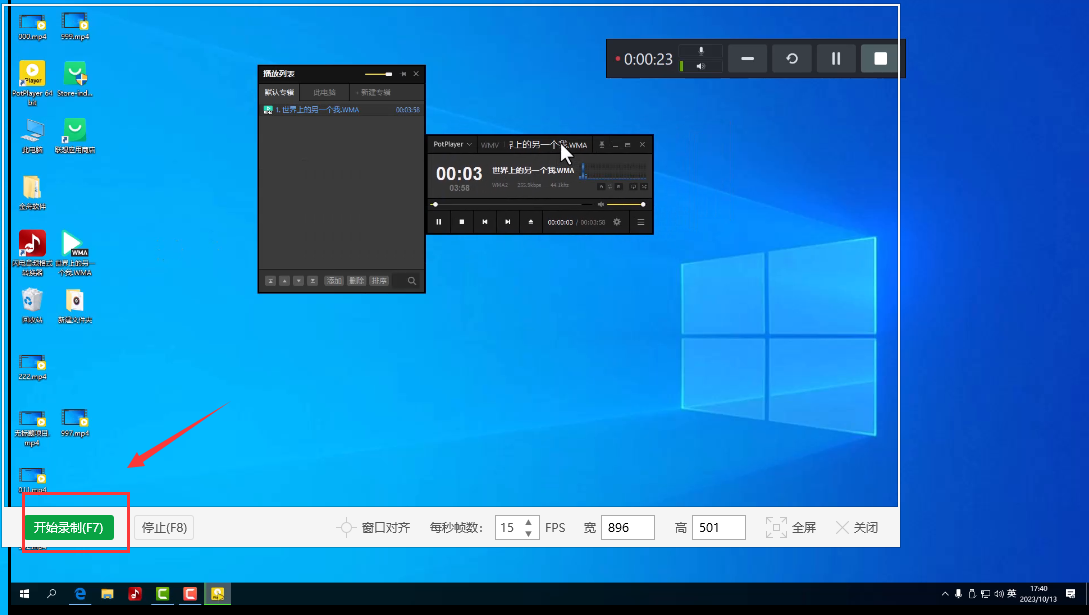 2、打开提前准备好的视频,拉动录屏边框,调节窗口大小,也可的输入具体尺寸大小;