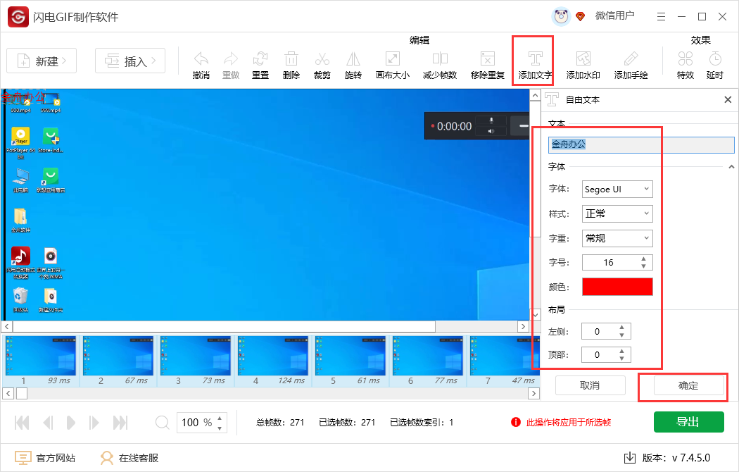 7、尺寸修改完成后,还可以点击【添加文字】输入文本,设置完成后点击【确定按钮】;