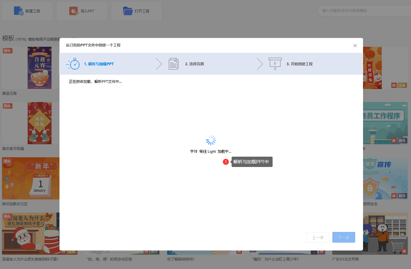 3.出现选择页面,可以拖动页面改变页面的添加顺序,点击【下一步】工程就创建好了