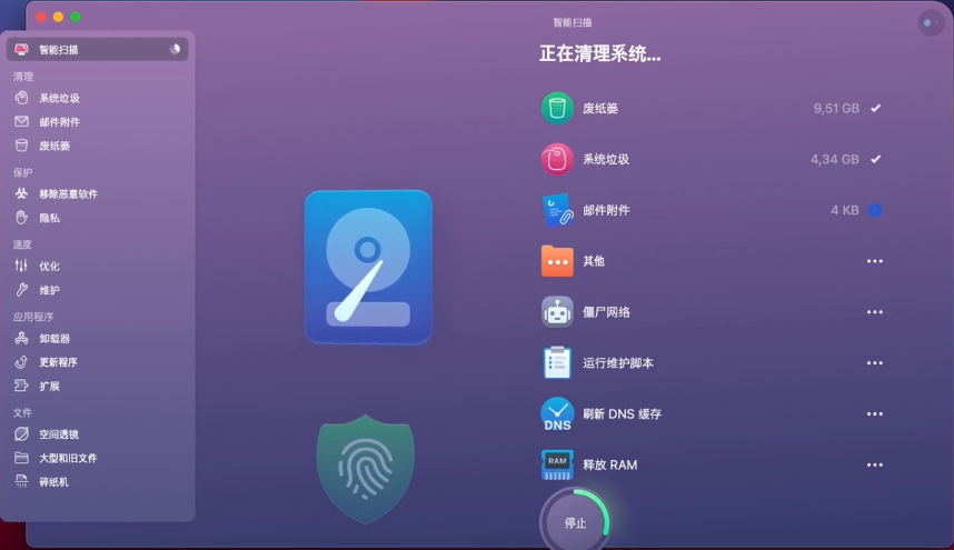 只需点按一下,即可释放硬盘空间,为您的 Mac 提速并让其远离恶意软件。