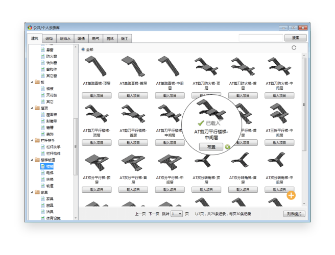 点击“公共/个人库”,即可进入族库选择界面,这里有专业标签,可以根据需要选择切换,左侧是类型树,已经根据使用习惯分好类。