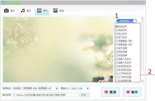 注:左侧可实时预览特效。