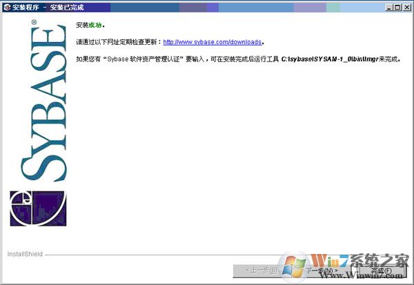 10、安装完成,点击“完成”,恭喜你,Sybase数据库安装成。