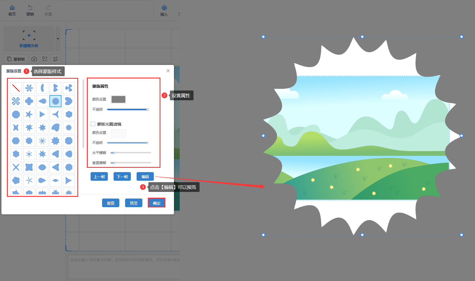 注意:当设置为自动播放时,需注意视频不要超出帧(路径)的边框,否则会出现视频无法自动播放的问题。