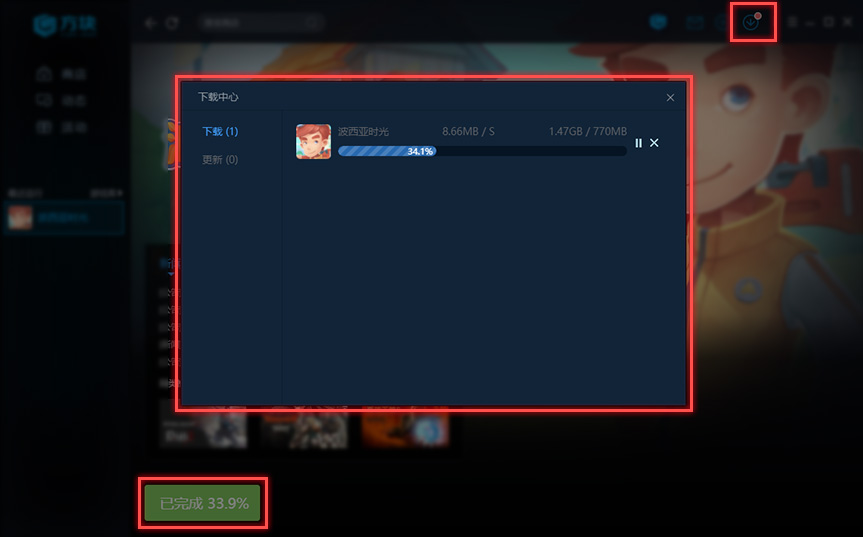 3、游戏客户端下载完成后,方块平台将自动为您进行游戏安装(第三方游戏不提供此服务)