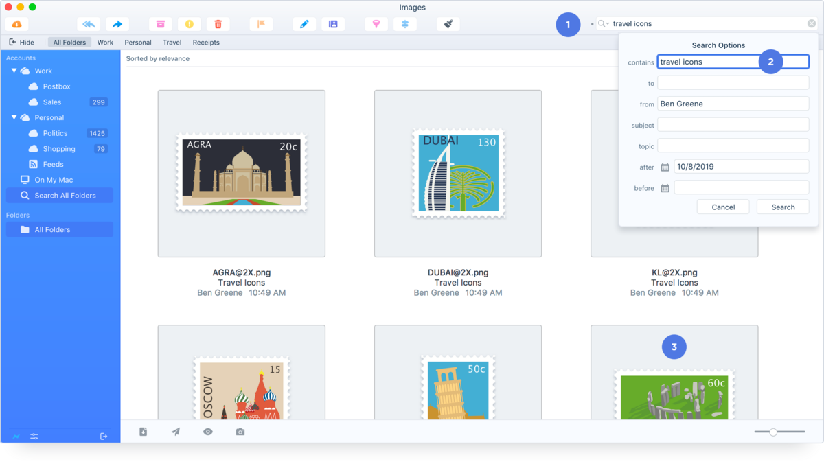 Postbox 对邮件的标签、分类、搜索的支持无与伦比,尤其适合信息分类强迫症的拉二狗。它提供 Focus Pane 功能,将收件箱(工作量)分割为更好处理的小块,利于识别优先级各个击破。邮件和 Todo List 视图的整合紧密,可直接查看未完成任务。而搜索功能更是可圈可点,从联系人到邮件内容、附件、图像,完整覆盖且快如迅雷。