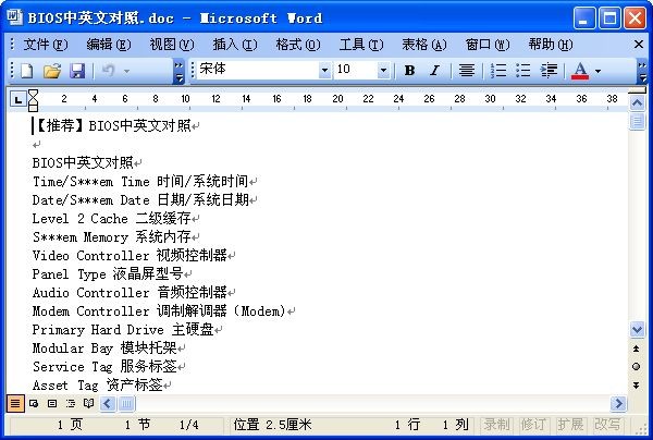 2、解压后打开文件夹中的BIOS中英文对照即可进行查看!