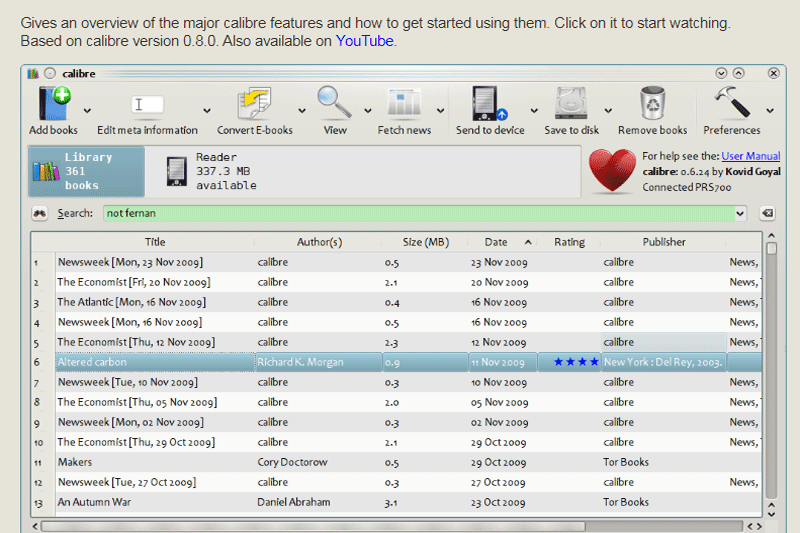 2、Calibre中文版拥有完整的电子图书馆,包括图书馆管理,格式转换,新闻,材料转换为电子书。