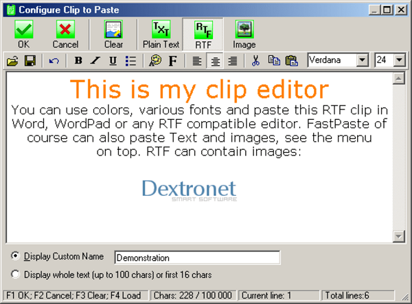 使用各种字体和颜色粘贴格式化文本(RTF)