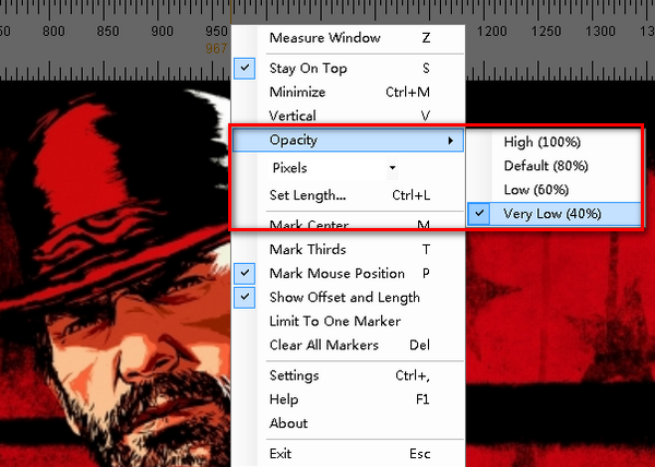 二、点击右键设置尺子位窗口长度,就能将尺子变成跟你所需要修改的窗口的长度一样。