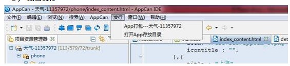 AppCan项目是由HTML文件、CSS文件、JavaScript文件、Config文件和别的图片、歌曲、影视资源依照一定的文件目录构造标准构成。AppCan集成化调试专用工具能够便捷的打包您的项目或公布到AppCan开发者平台。