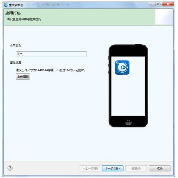 2)可以修改应用名称,上传图标,我们使用默认的然后点击,下一步;