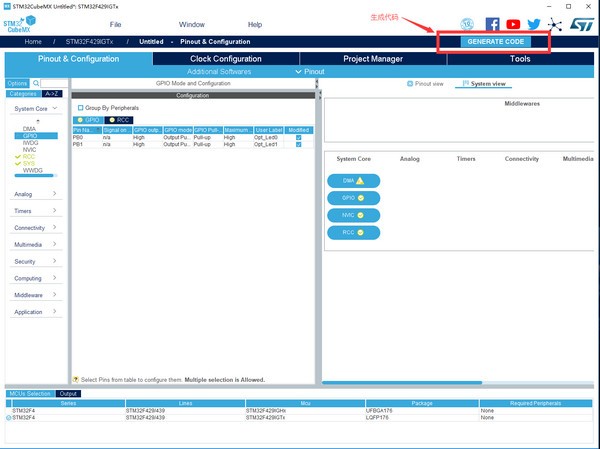 微控制器以图形方式配置外围设备和中间件的功能模式和初始化参数