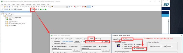 生成完以后,OpenProject 然后进入Option,选择Debugger分支,下载器选择ST-LINK,同时修改里面的选项每次下载后自动重启。保存关闭工程再打开即可开始你的开发之路。