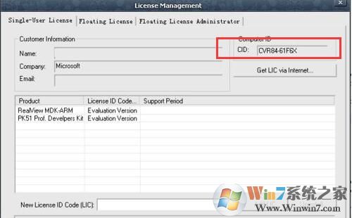 2.打开uvision4,点击File---License Management…,打开License Management窗口,复制右上角的CID;