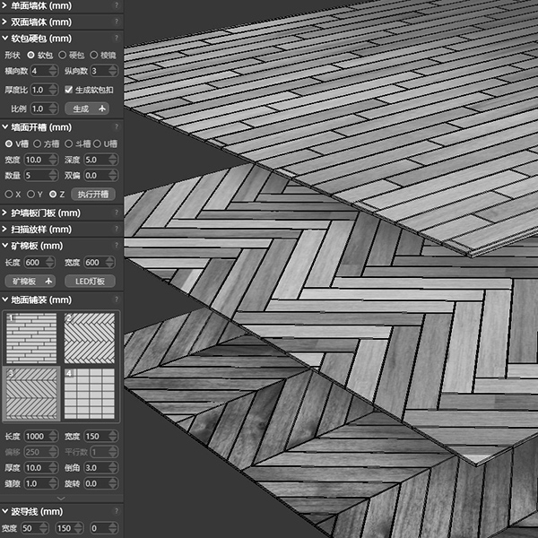 大量室内构件的参数化建模,分分钟搭建好一个场景,建模,材质,灯光,渲染一条龙服务,无论普通家装还是超复杂的豪华工装都能轻松胜任。