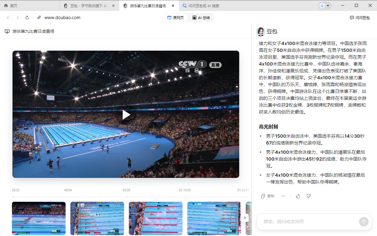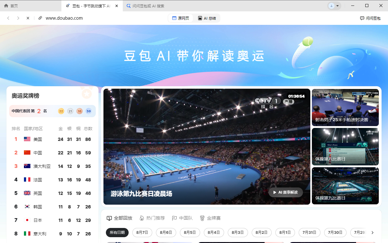 豆包电脑版是一个优秀的AI智能助手,最新版增加了AI图片提问功能,选择图片,输入问题,即可为你解答图片中的内容,十分强大。增加了奥运会专属版块,你可以在这里观看实时比赛视频,并使用AI助手分析近期比赛局势,查询获奖信息,获取奥运资讯,非常的方便。