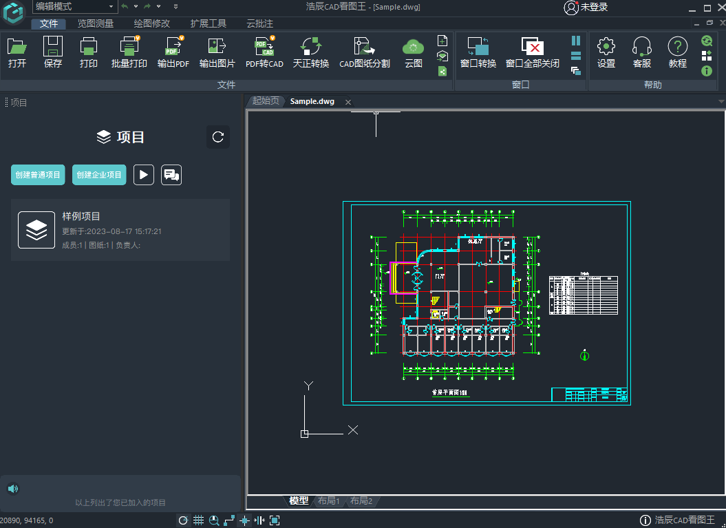 启动浩辰CAD看图王电脑版后,将工作空间切换至【编辑模式】,打开需要编辑的CAD图纸文件。
