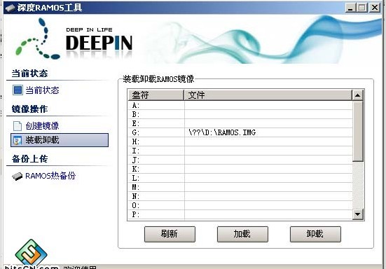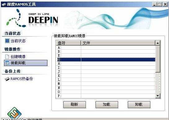 "装载镜像" 双击一个空闲的盘符,选择刚才创建的文件(以前创建好的也行),这样就装载成功了,在“我的电脑”里也该多个盘符出来了吧;
