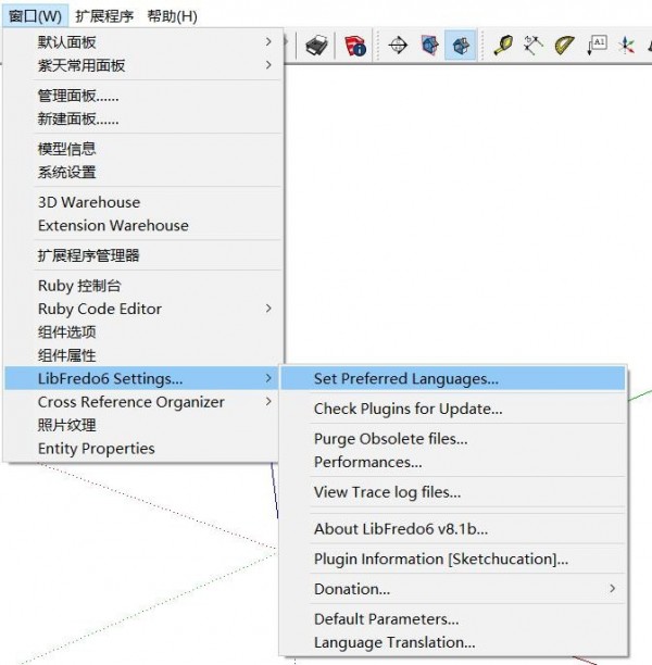 LibFredo6的选项设置菜单在SketchUp的Window下拉菜单下,不过它并不能单独运行,需要配合以下插件才能起作用,它们包括: